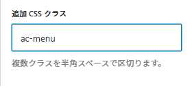 - 見出し選択後、右側の「高度な設定」の中の「追加cssクラス」に「ac-menu」と記述します。